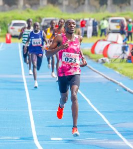 Dennis Kipkoech Kemboi competing during junior trials at Afraha Stadium