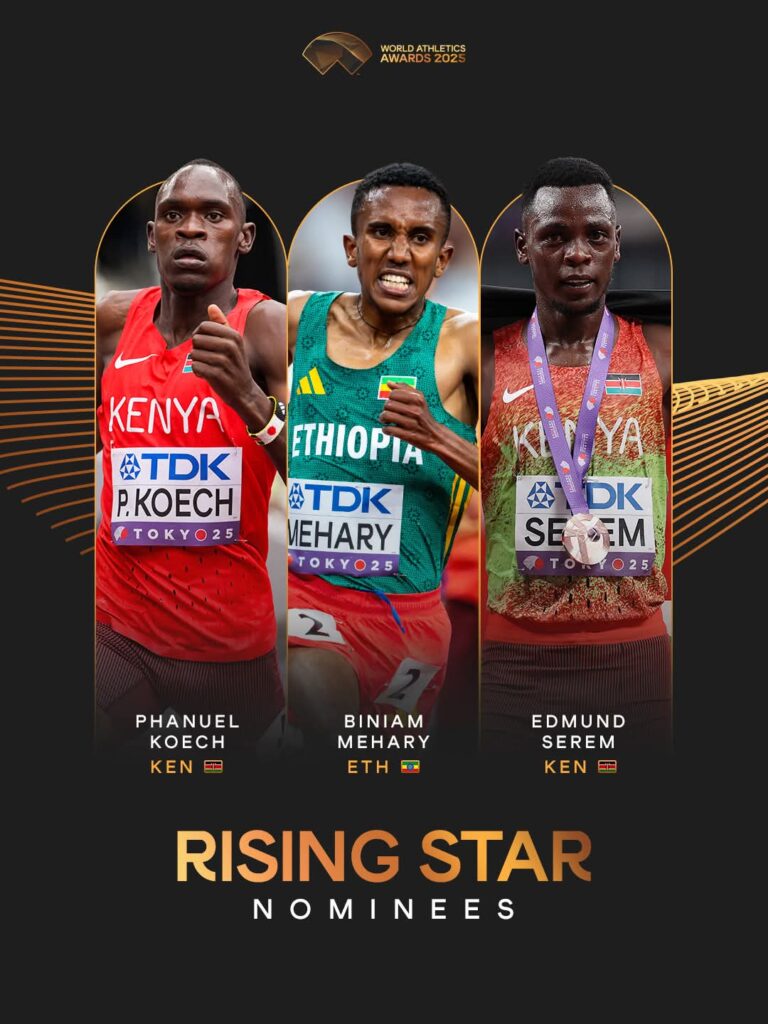 East Africa continues to shape the future of world athletics, with two Kenyans — Phanuel Koech and Edmund Serem— named among the three finalists for the prestigious 2025 World Athletics Men’s Rising Star Award. Joining them is Ethiopia’s long-distance sensation Biniam Mehary, completing an all-African shortlist that underlines the continent’s dominance in youth distance running.