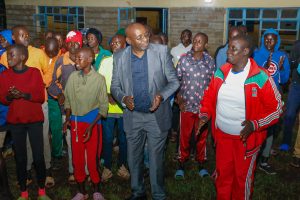 Director AK Youth Development Barnaba Korir interacting with athletes at Kituro Holiday training camp
