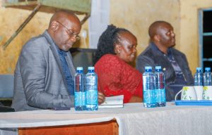 AK Youth Development Director Barnaba Korir, safeguarding officer Mrs. Elizabeth Keitany and youth officer Dominic Ondieki at Kituro Holiday training camp in Baringo County.
